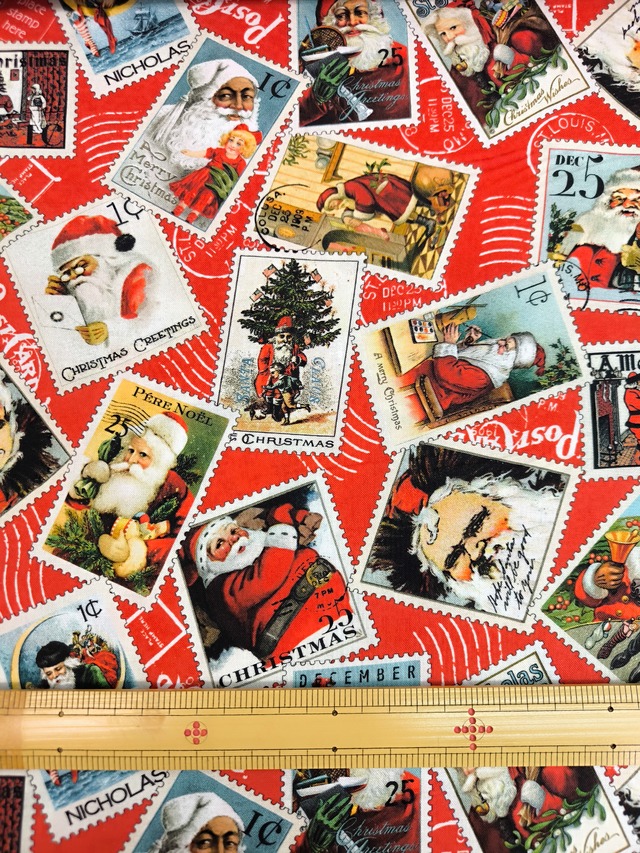 立派なモフモフっとしたあごひげの優しいサンタさんが素敵なデザイン シーチング 約110cm×50cm 50cm→1、1m→2とご購入ください ※50cm単位販売以外はお問い合わせください ※在庫のみ。再入荷はありません