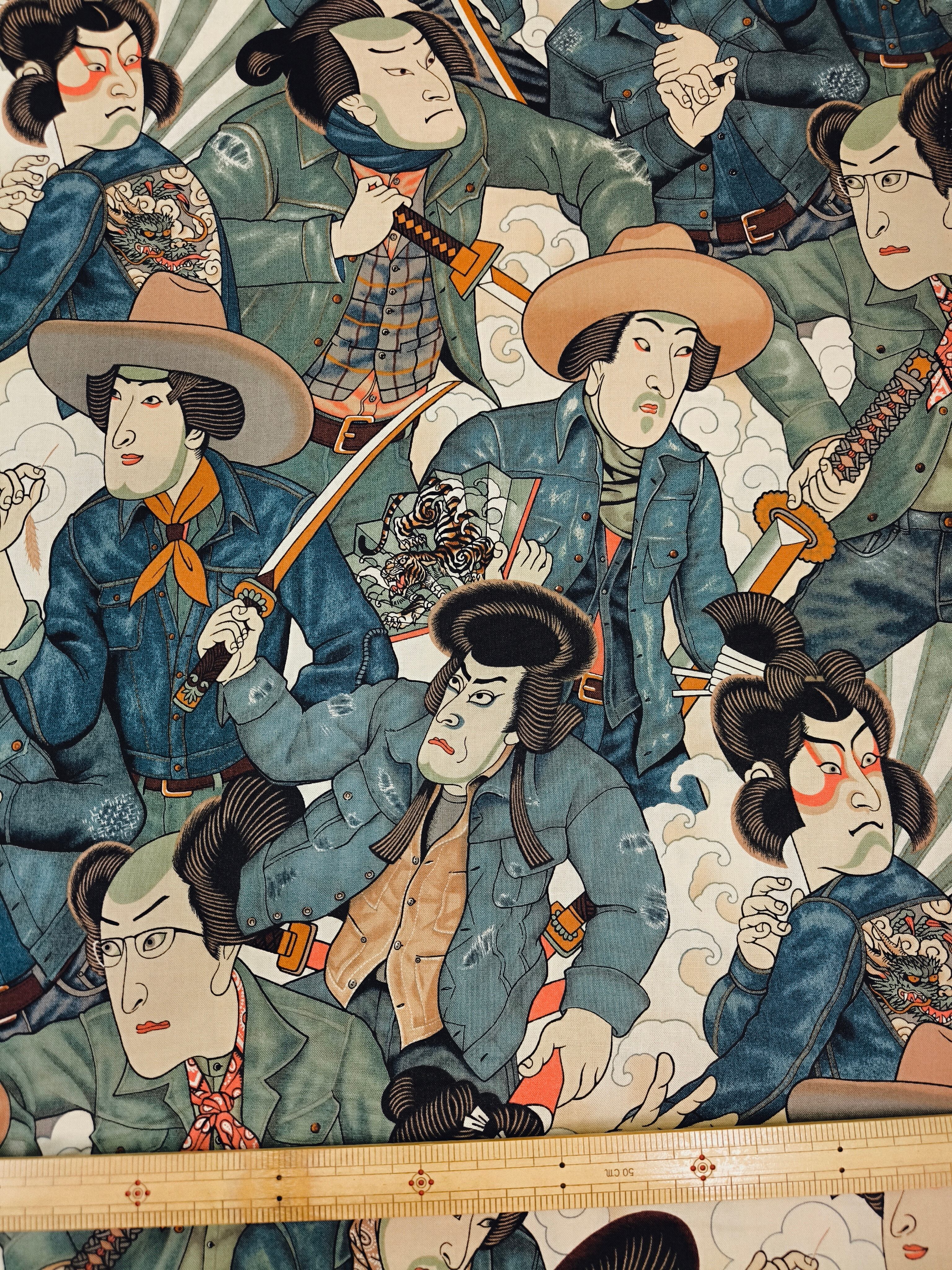 サムライをテーマにしたこの生地は、プロジェクトに個性的な要素を加え、見る人の心をつかむことでしょう。