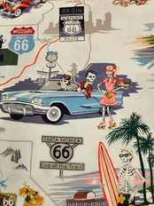 この生地は、アメリカンカルチャーを象徴する風景やイメージが詰まっており、さまざまなプロジェクトに冒険心あふれる雰囲気を与えてくれるでしょう。