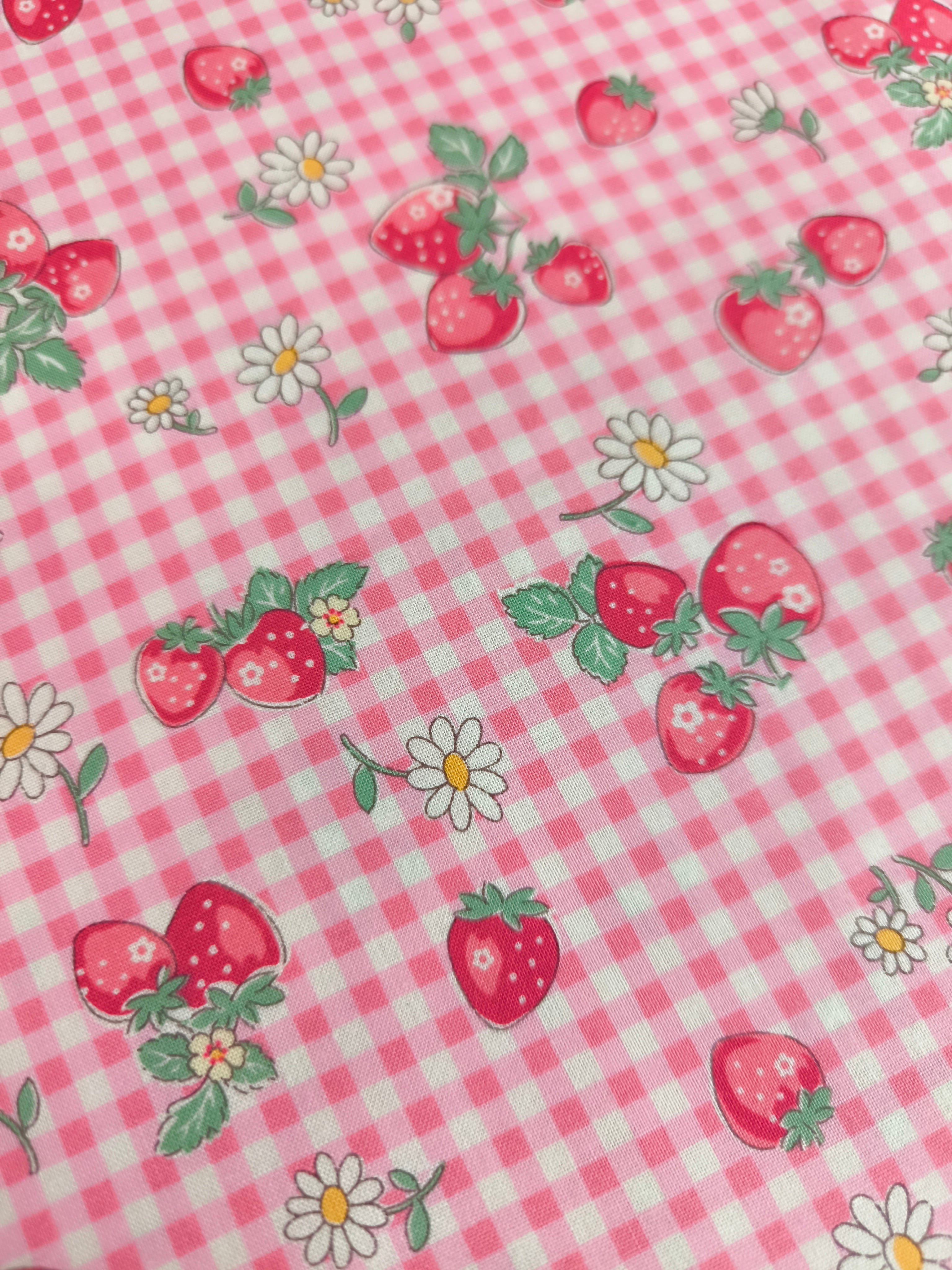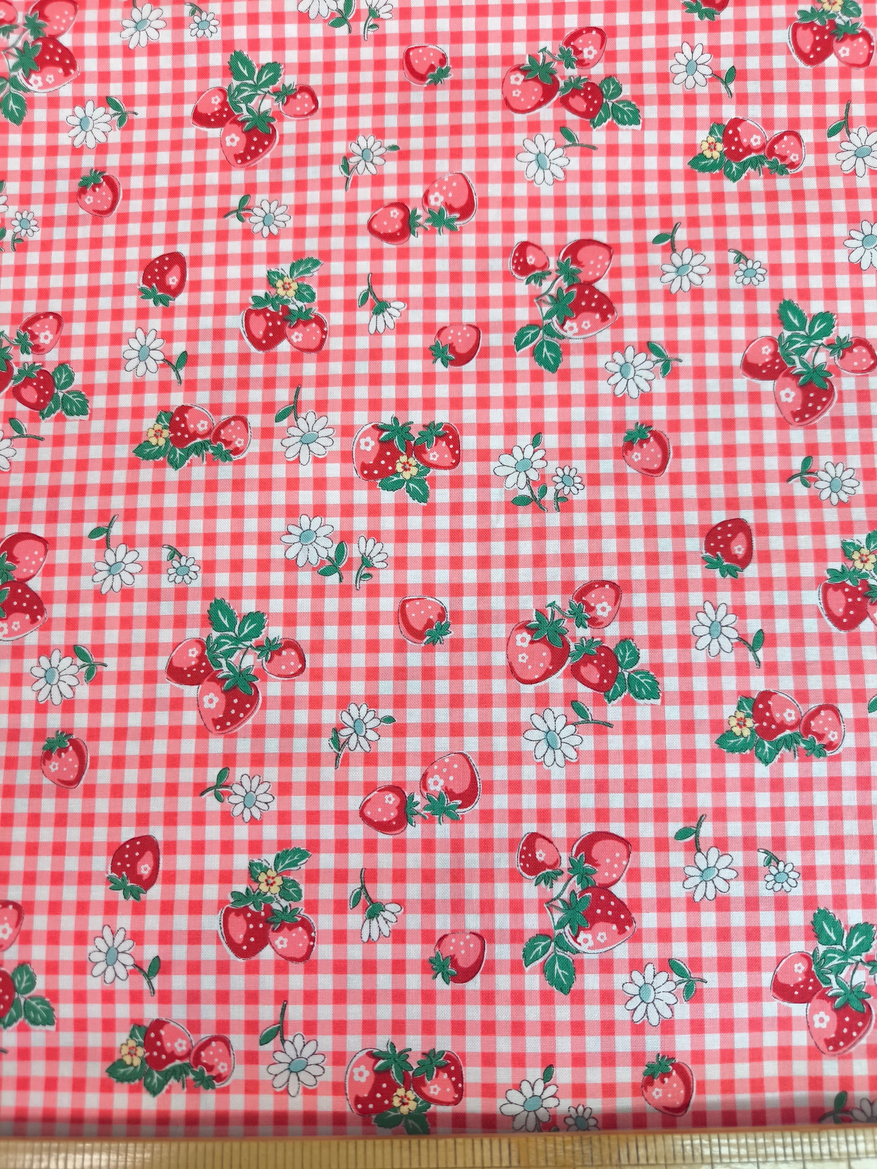有輪商店 YUWA yuwa 松山敦子 可愛い カワイイ cawaii 小柄 生地 コットン 布 ハンドメイド 手芸 ソーイング 洋裁 パッチワーク カルトナージュ ポップ 綿100% 入園準備 入園バッグ いちご チェック