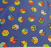 サイコロにアルファベットやグッズのネイビーに小さいドットの可愛いデザイン