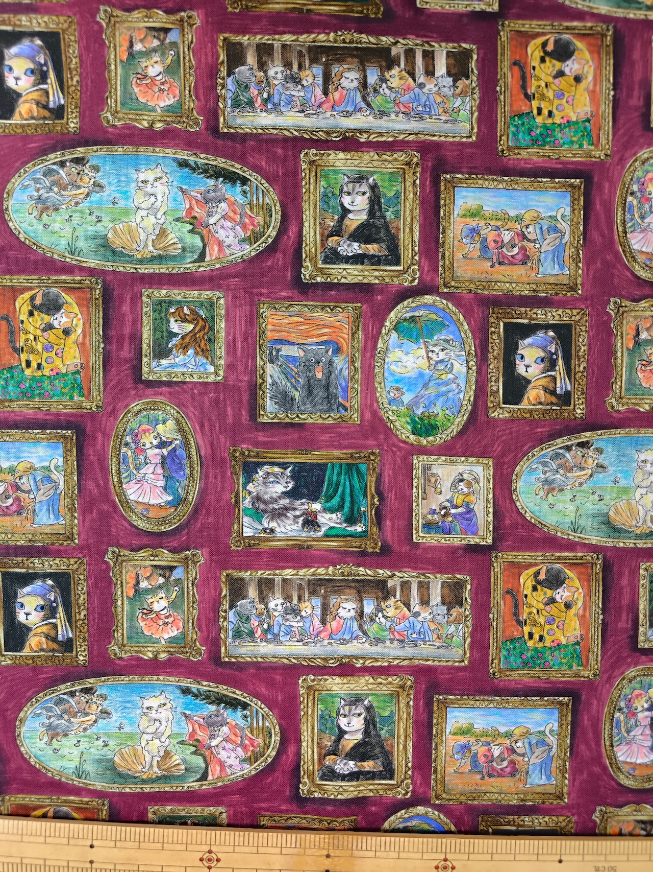 モデルのネコちゃんがアート作品をより引き立てるフレームのデザイン