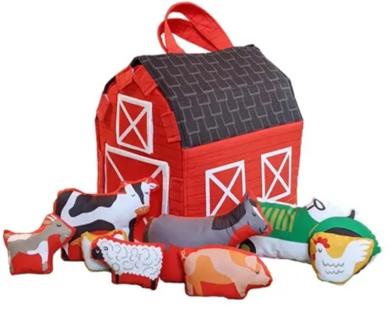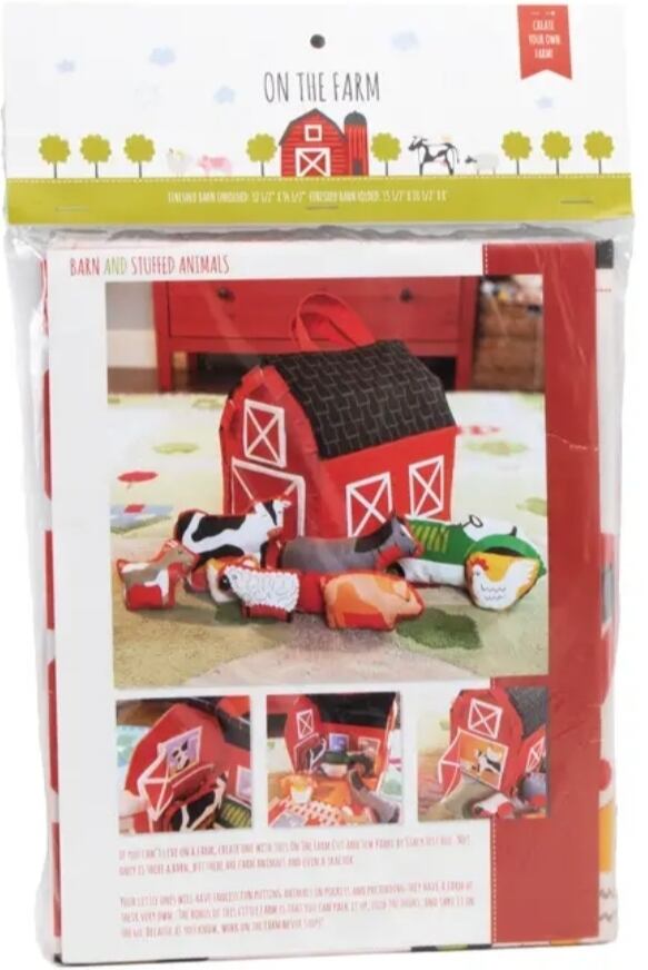 パネル生地をカットして、接着キルト綿と手芸用綿でふわふわ手触りの農場セットが作れます。