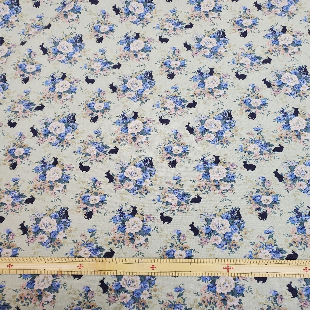 花にかわいいウサギが隠れている 、エレガント&キュートな生地。