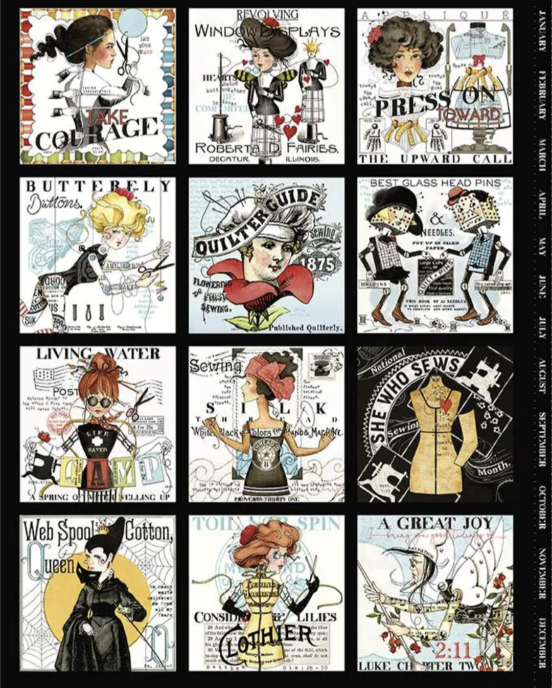 Riley Brake「 SHE WHO SEWS calender girl patch」パネル