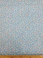 スカイブルーにオレンジのドットが可愛い小花がランダムなデザイン