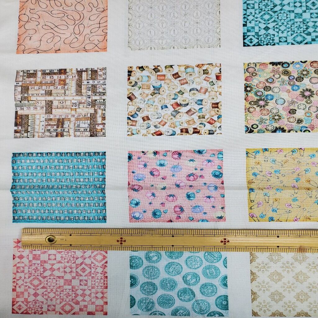 良く見ると糸巻きやボタン、シンブル、パッチワークパターン等良く見るとシリーズです