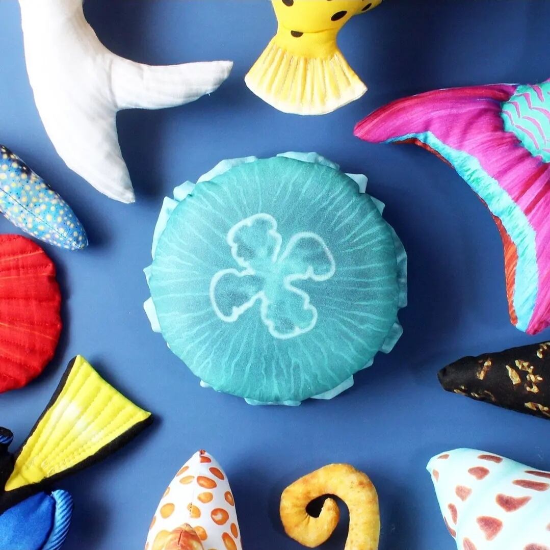 珍しい水の仲間たちがデザインされたパネル生地