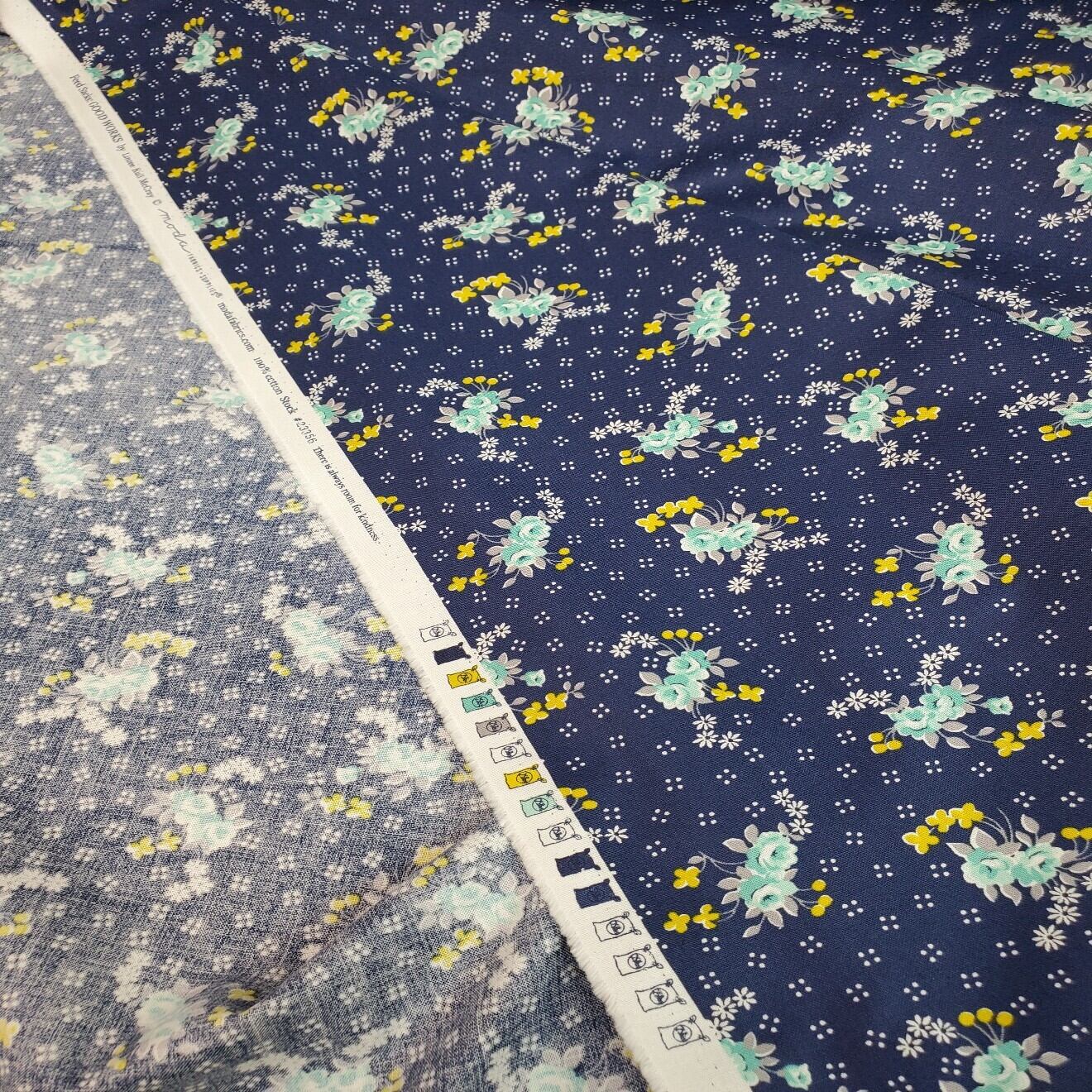 レトロなネイビーカラーにエメラルドグリーンのお花が可愛いデザイン