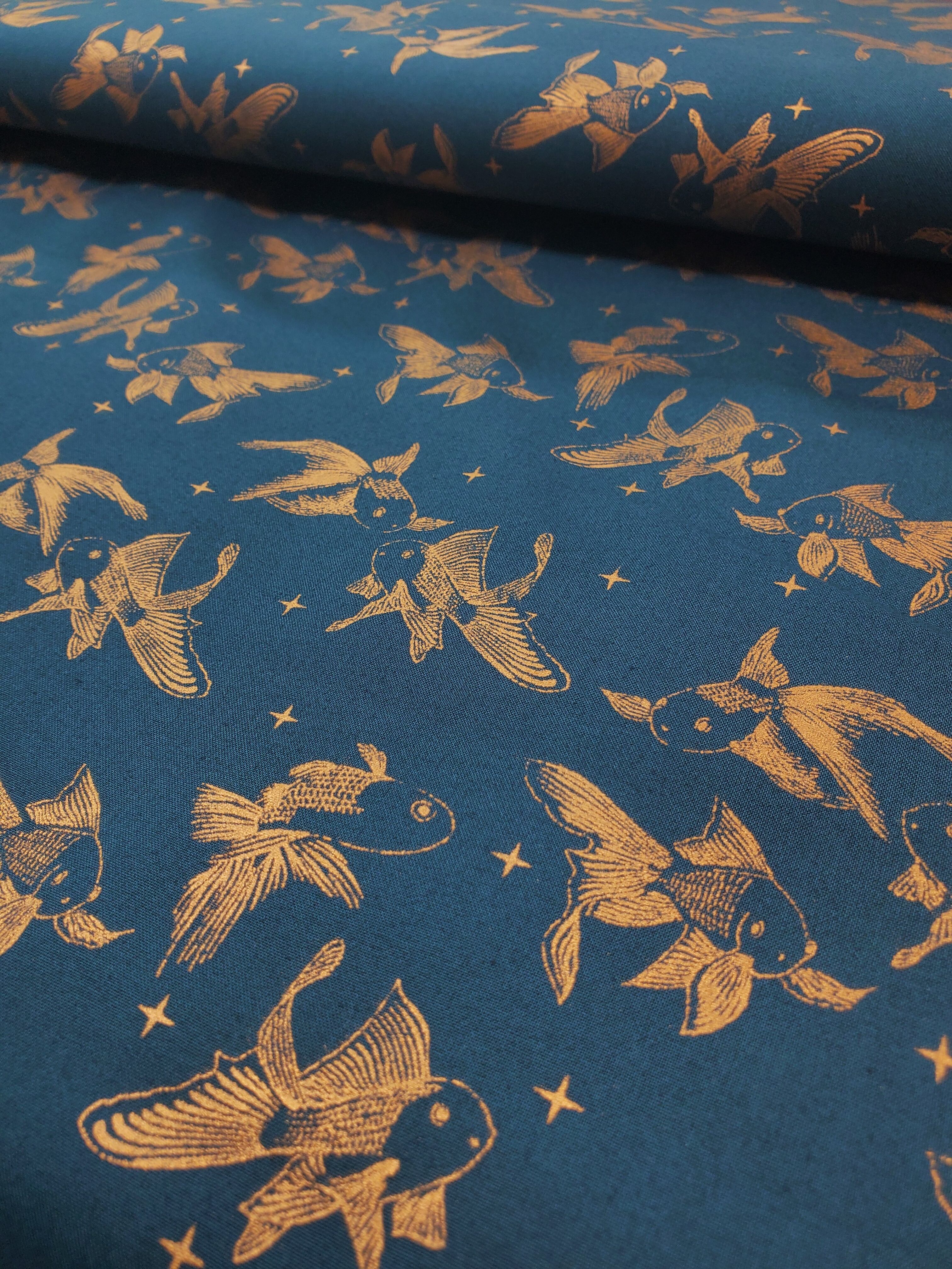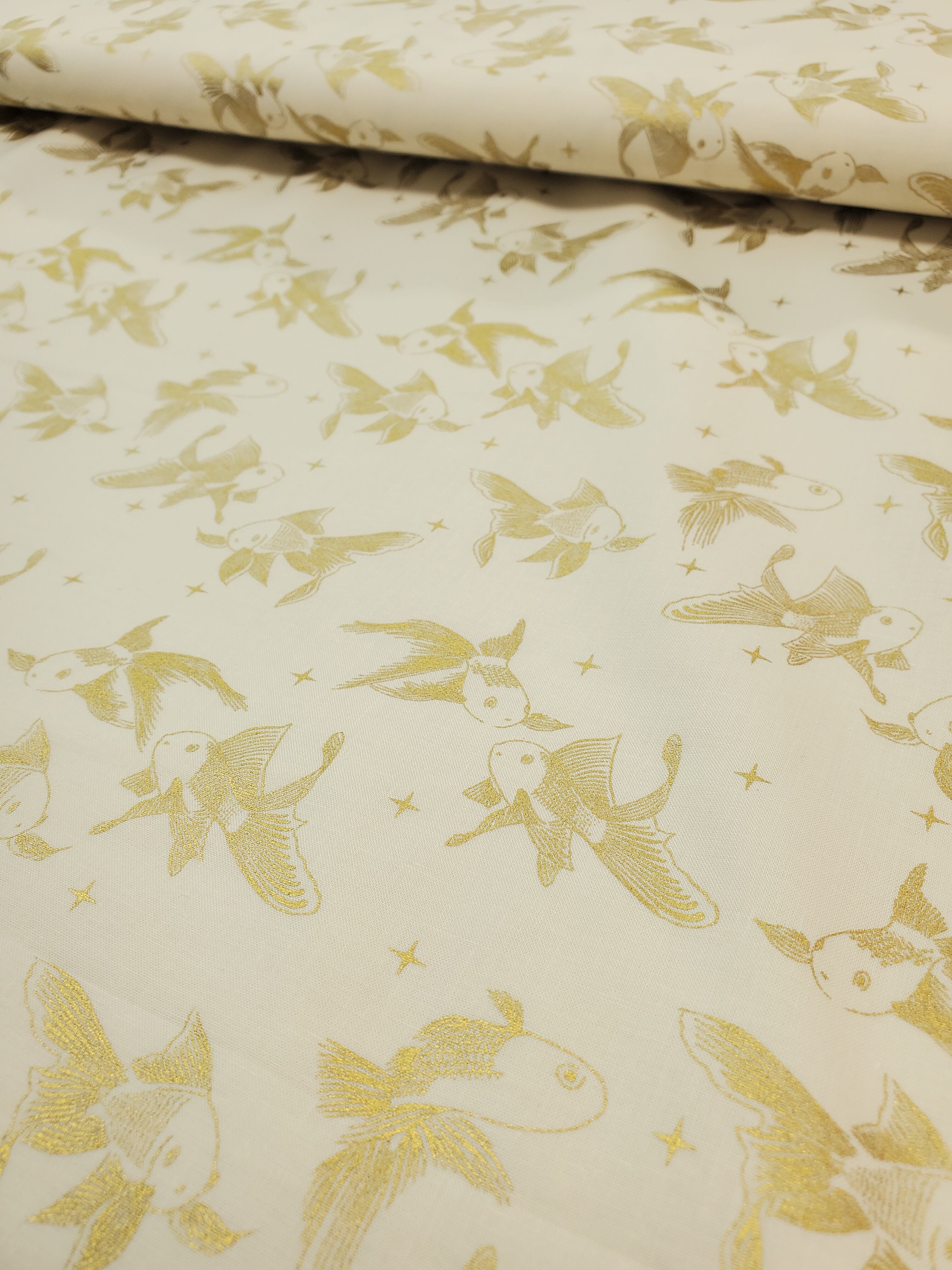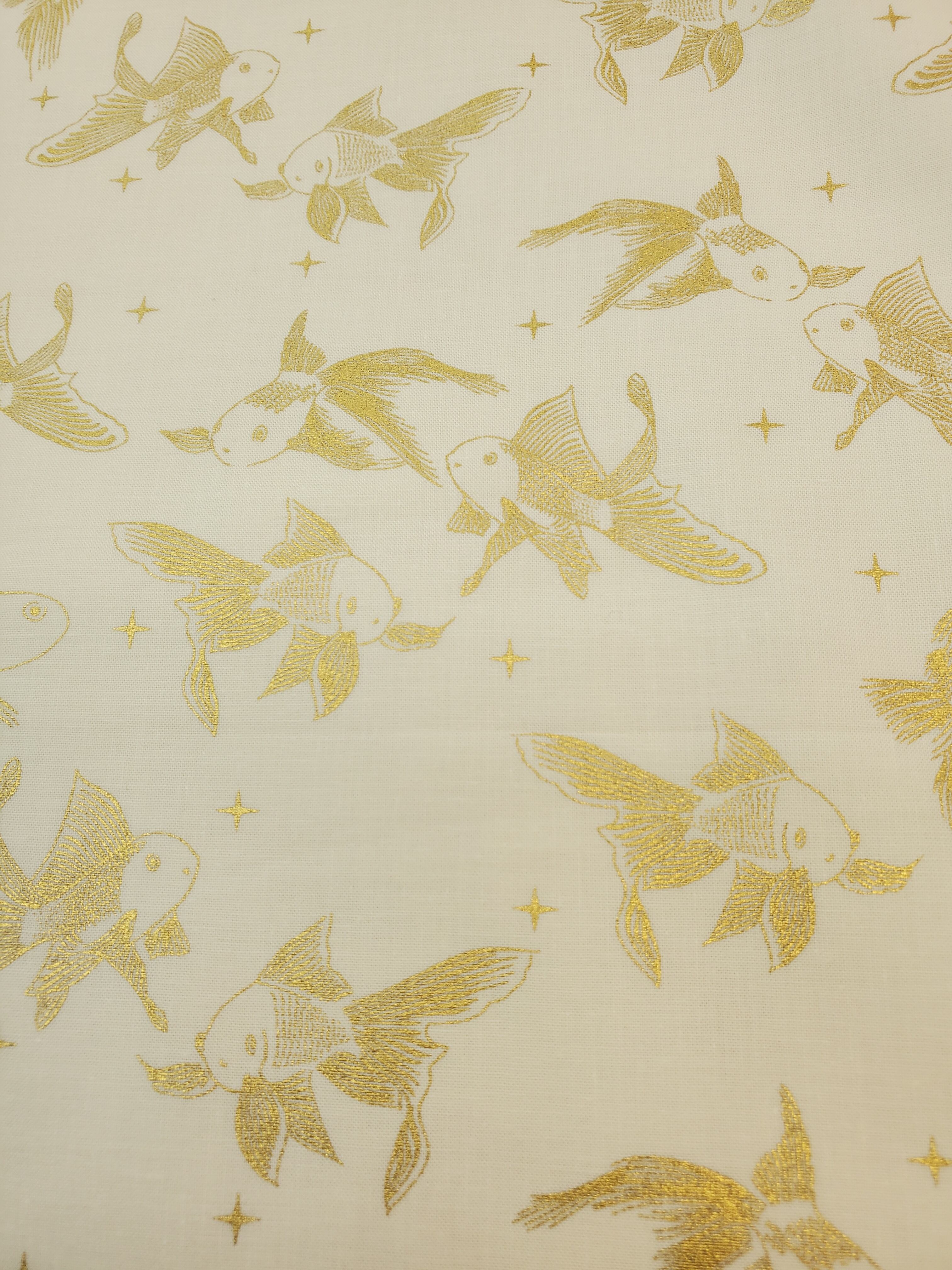 ピンクゴールドとゴールドの金魚が優雅に泳いでいるようなデザイン