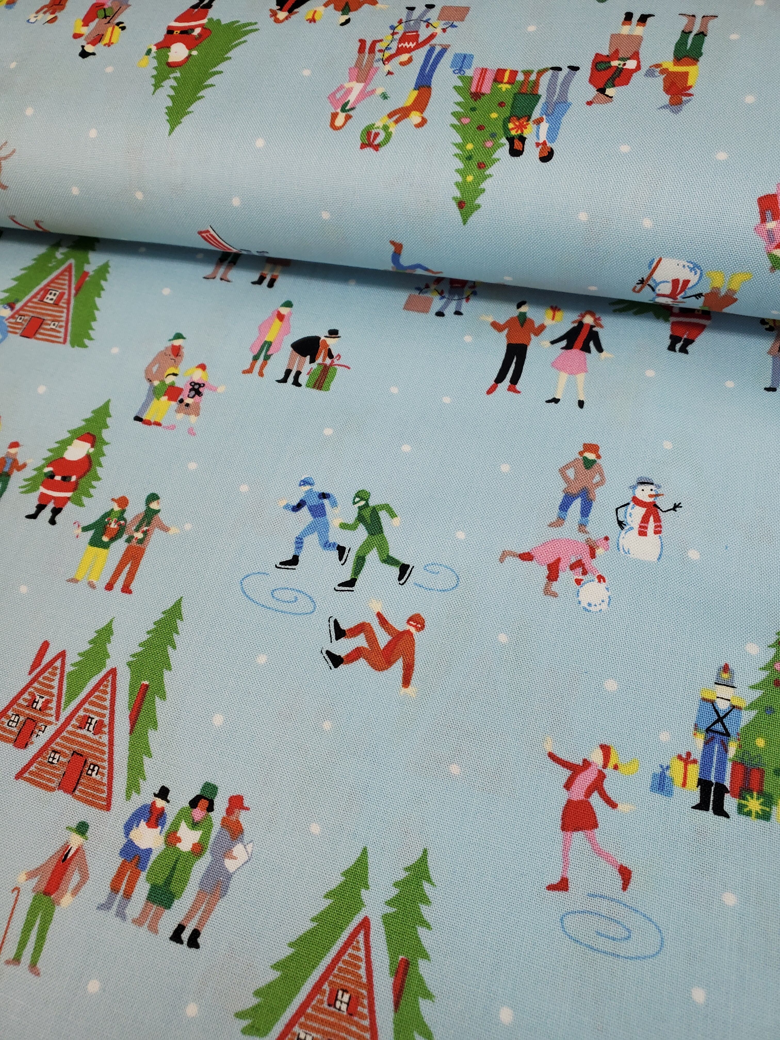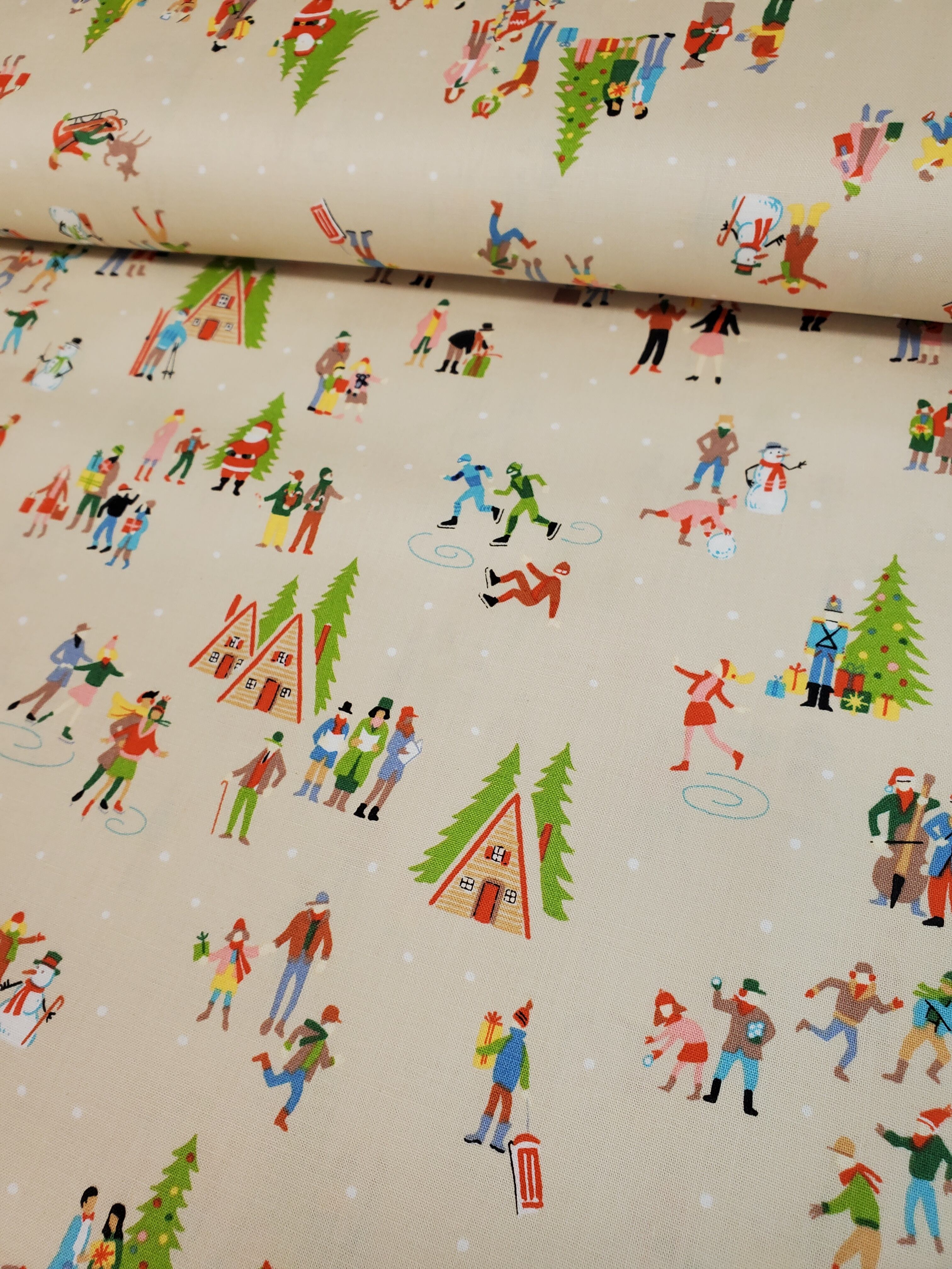 飾りつけを楽しんでいるファミリーやプレゼントを抱えてショッピングをしている様なデザイン