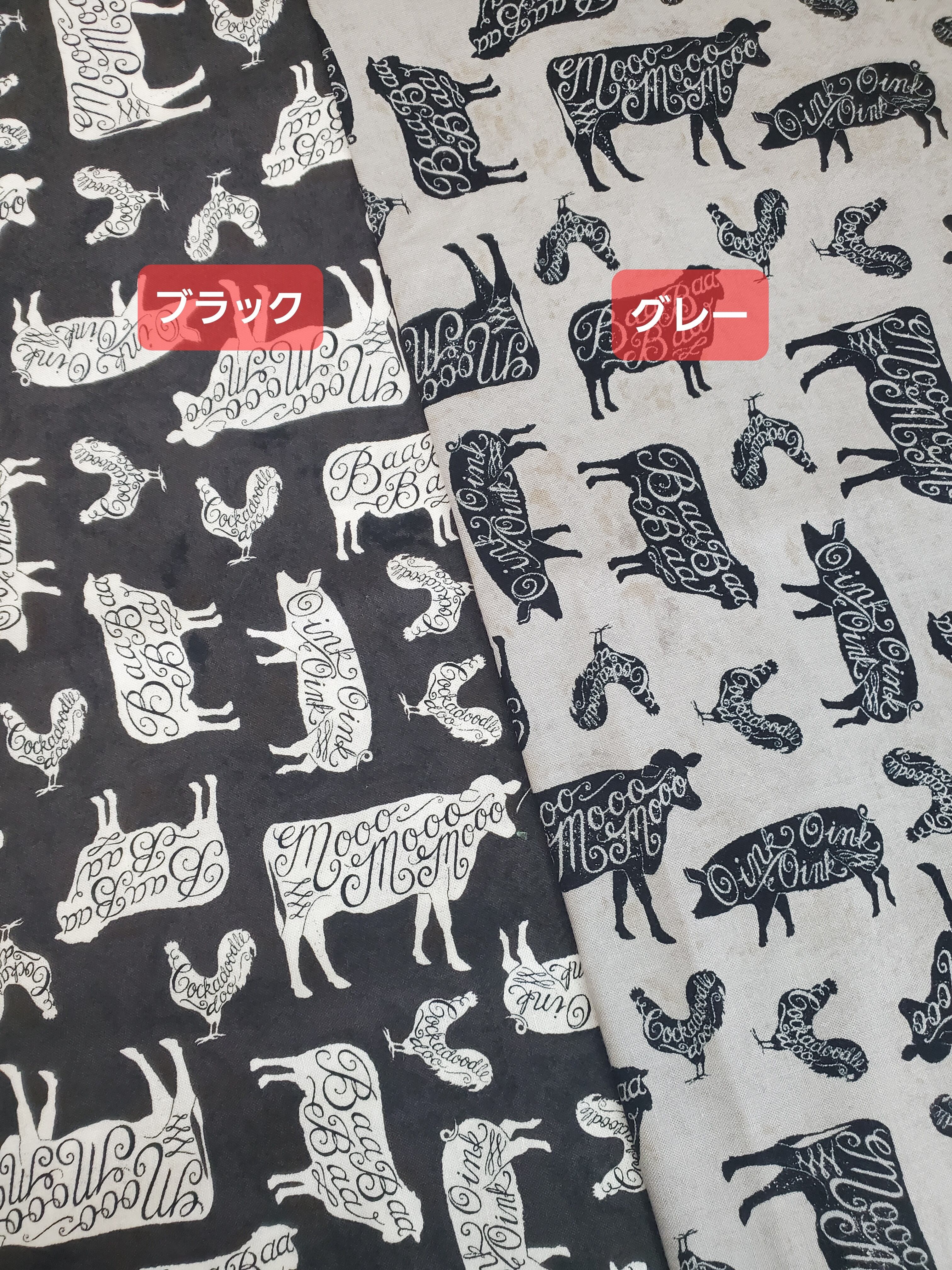 ウシさんやぶたさん、やぎさんひつじさんたちの鳴き声がおしゃれに刻まれているデザイン