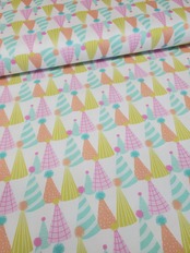 淡いカラーのケーキやさんかく帽子がほっこりかわいいデザイン