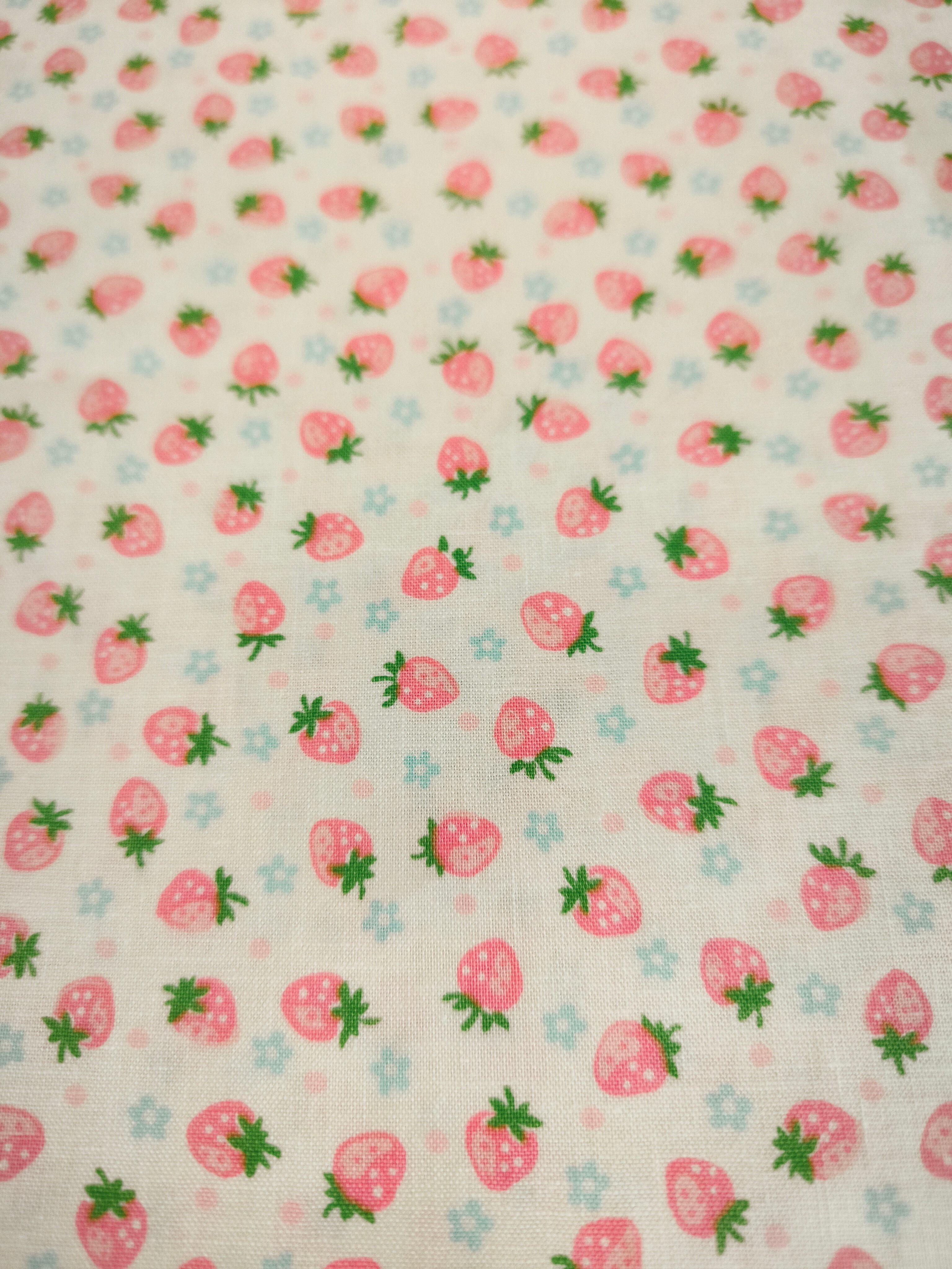 小さくて可愛いいちごとブルーの小花がいっぱいのデザイン